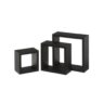 89340: 25x25x9 cm. 89341: 20x20x9 cm. 89342: 15x15x9 cm. pannello mdf da 15 mm laminato con pvc. peso massimo supportato: 5 kg per scheda.