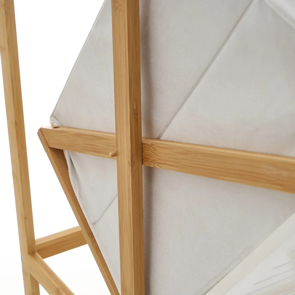 PANNELLO IN MDF LACCATO DA 9 MM. STRUTTURA IN BAMBÙ DA 14X30 MM. ALTEZZA GAMBA: 7 CM. DISTANZA TRA I RIPIANI: 32 CM. MISURA INTERNA CESTO: 27X32X54 CM. PESO MASSIMO SUPPORTATO: 5 KG PER RIPIANO, 10 KG CESTELLO, 25 KG TOTALE.