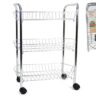 Questo carrello in metallo con scaffale a 3 livelli e ruote è caratterizzato da un design semplice e funzionale, adatto per vari usi. La robusta struttura in metallo garantisce durata e stabilità, mentre i tre livelli offrono ampio spazio di archiviazione, permettendo di organizzare diversi oggetti in modo ordinato. Le ruote installate facilitano il movimento del carrello, rendendolo ideale per l’uso in cucina, studio, bagno o ufficio.